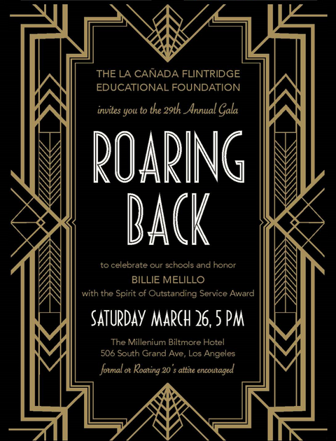 On March 14, 2026, the La Canada Flintridge Educational Foundation ("LCFEF") will hold its 33rd Annual Spring "Galactic" Gala at Taglyan Complex, Los Angeles.